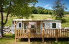 These mobile homes are most centrally located on the upper ground of the campsite, with a beautiful view of the mountains. Suitable for up to six people.