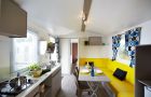 These mobile homes are located on the upper area of the campsite. This caravan is suitable for a maximum of four people.